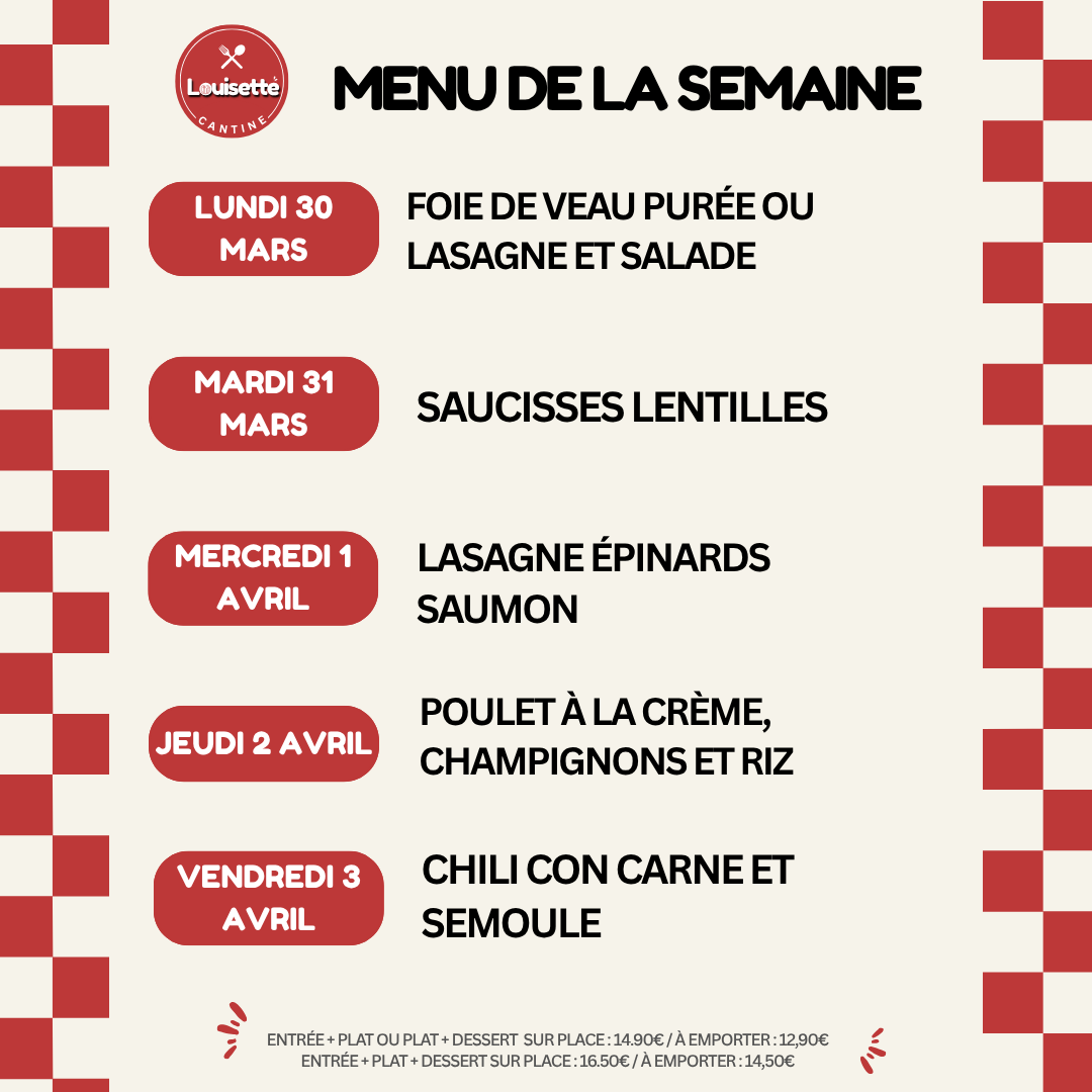 Chaque semaine, Louisette Cantine vous propose un menu fait maison préparé avec des produits frais et de saison.